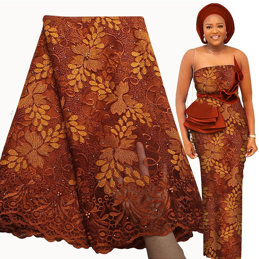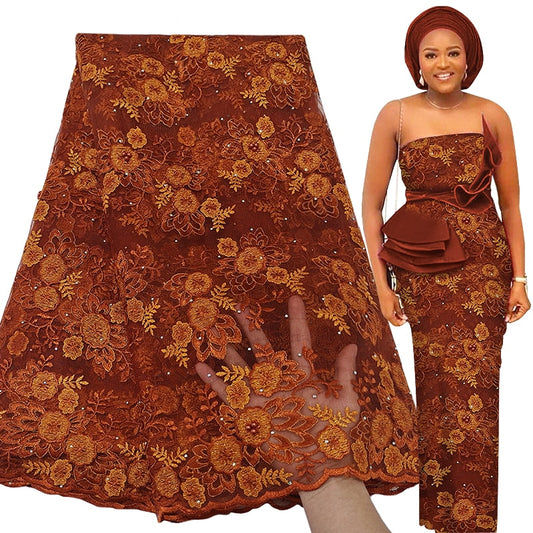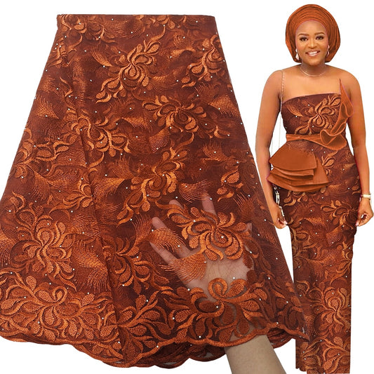 Rhinestones Embroidery African Lace Fabric 5 Yards