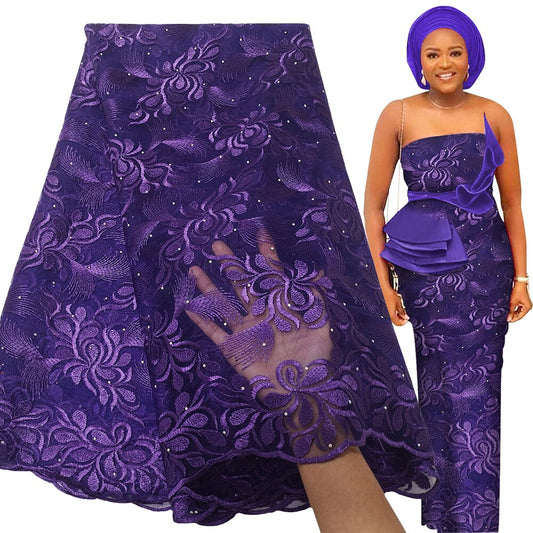 Texgate Latest French Tulle Lace Fabric High Quality Embroidery Beaded African Lace Fabric 5 Yards For Nigerian Wedding Asoebi