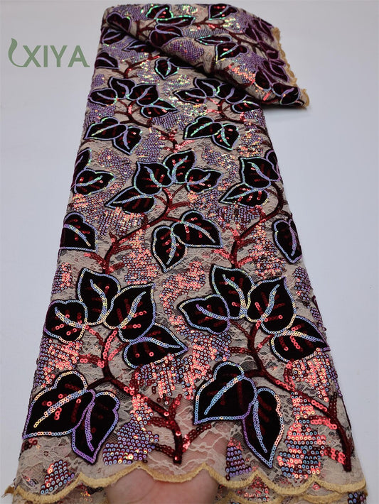 XIYA African Velvet Sequins Lace Fabric 5 Yards 2022 High Quality Soft French Tulle Nigerian Wedding Asoebi Women Dress LY749-4