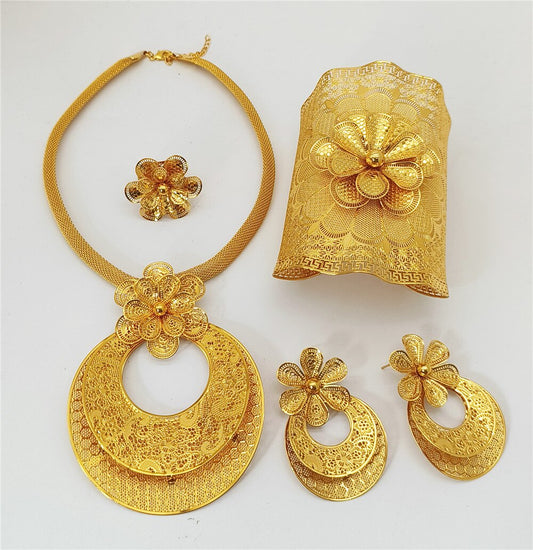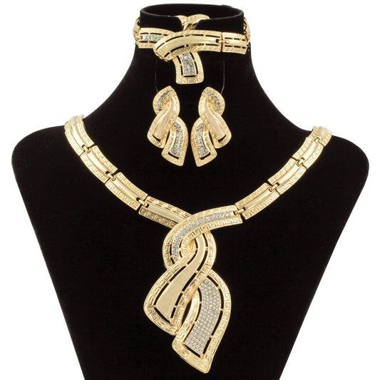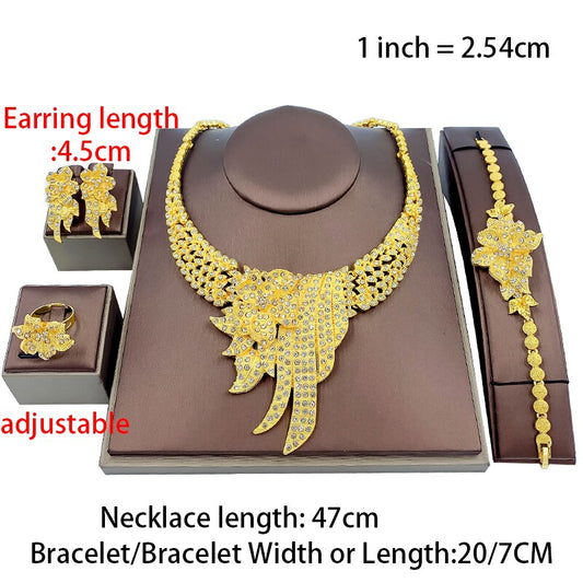Dubai Gold Jewelry Fashion African Nigerian Crystal Necklace Bracelet Ring Wedding Earrings Women Bridal Jewelry Sets