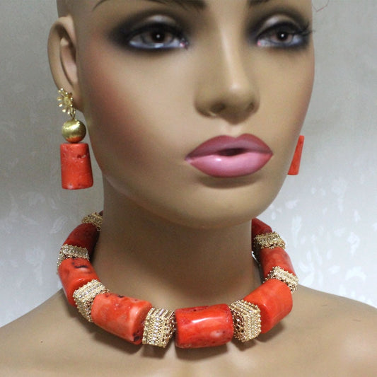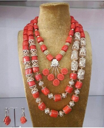 Jewelry Set Coral Men One Layer 100% Original Coral Beads Jewelry Set African Nigerian Necklace Set of Jewelry Wedding Necklace