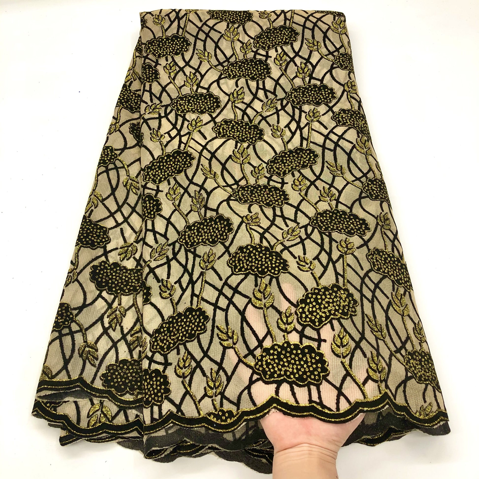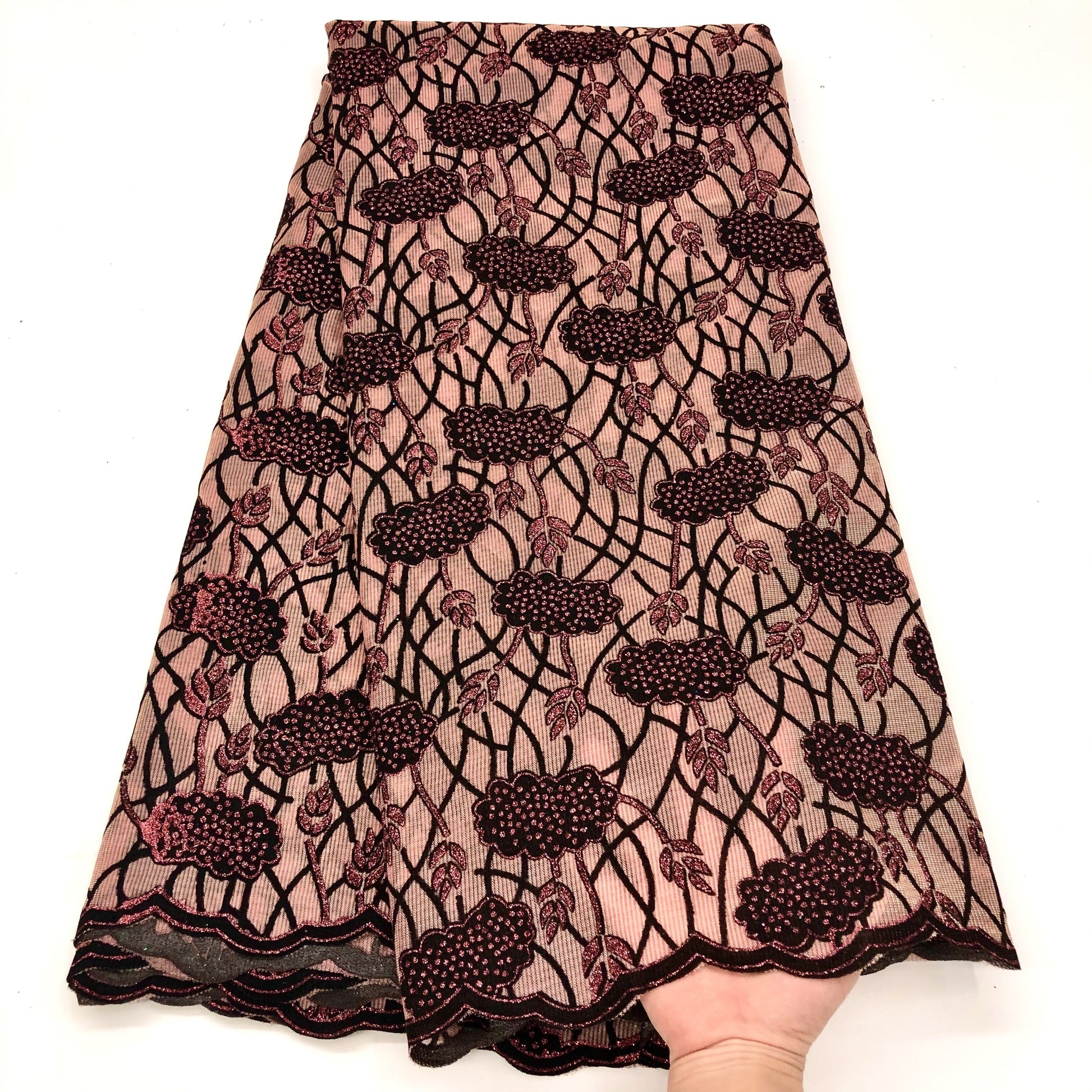 Latest Design Flocking Velvet French Net Lace Fabric High Quality Sequins Embroidery Nigerian Lace Material Asoebi For Wedding