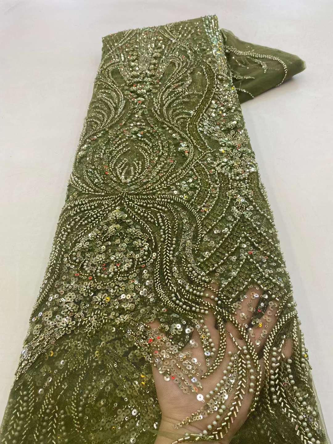 Luxury Beads Sequence African Lace Fabric 5 Yards 2023 High Quality French Tulle Sequins Nigerian Asoebi Wedding Fabrics Sewing