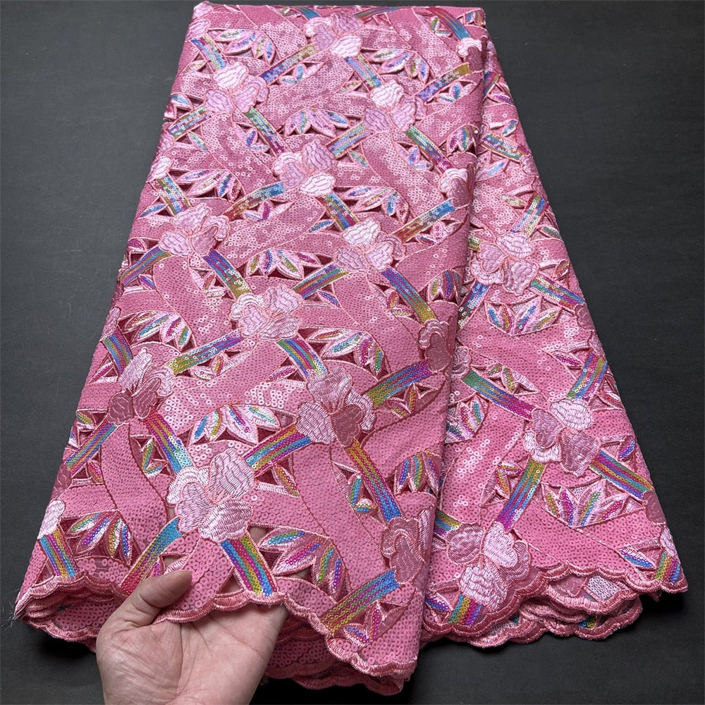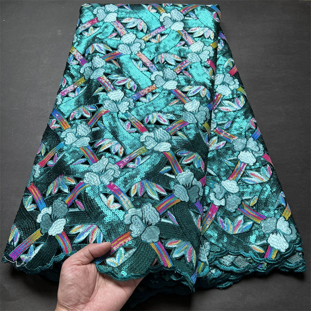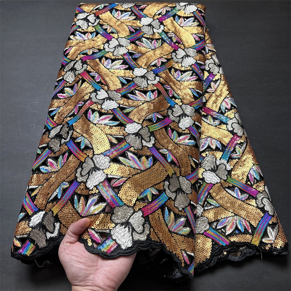 Luxury Handcut Sequence African Lace Fabric Nigerian Wedding Asoebi High Quality Sequins Organza Lace Material zp132