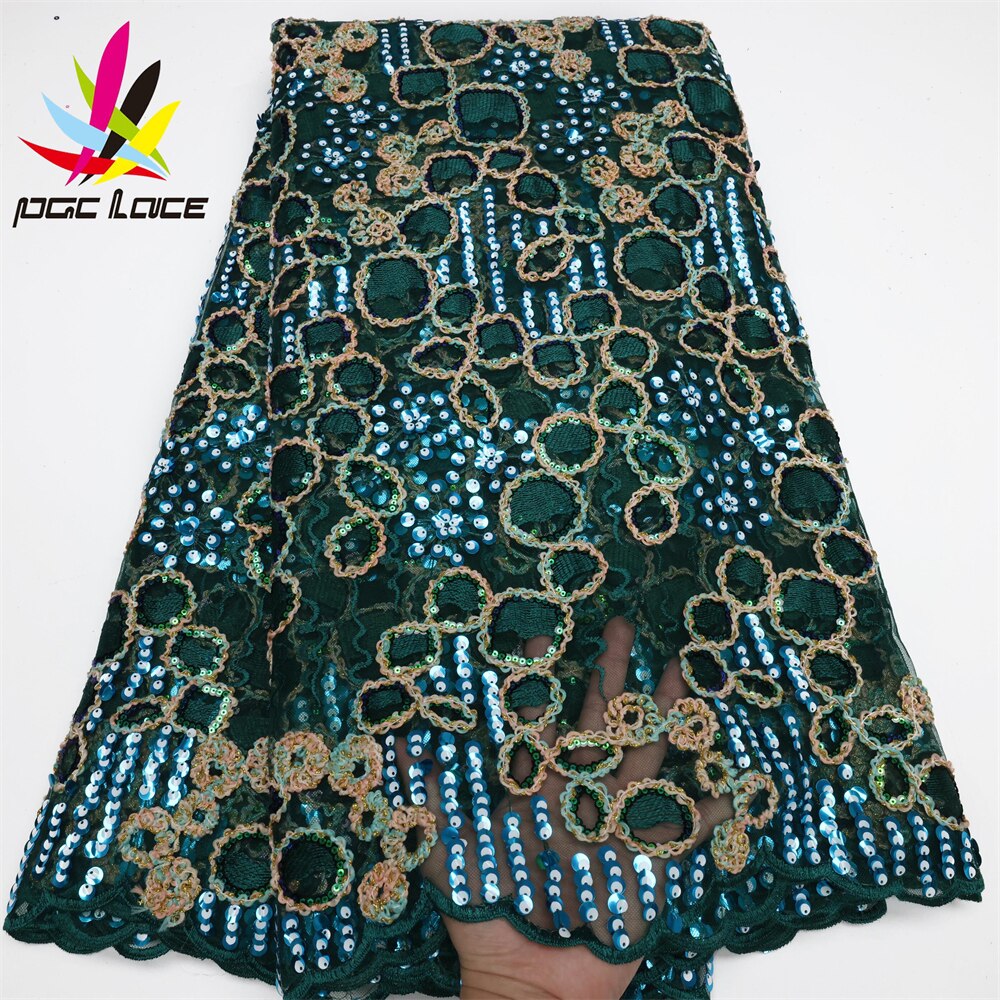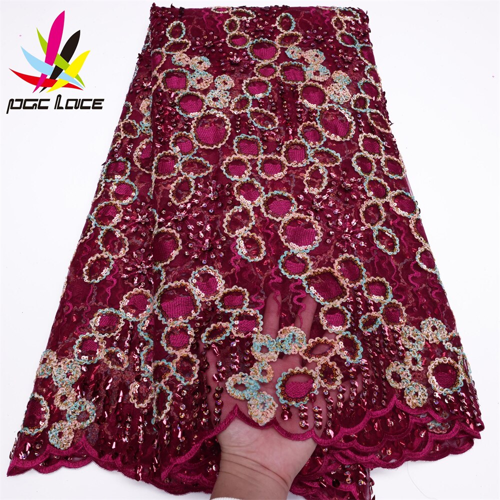 PGC Embroidery African Sequins Lace Fabric 5 Yards 2022 High Quality Nigerian Wedding Asoebi French Tulle Lace Material LY506-2